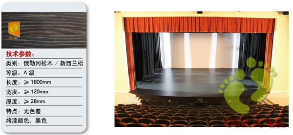 劇院舞臺是演員表演的中心區(qū)域,這里的地板要求必須滿足堅(jiān)硬、耐磨、具有彈性和防止伸縮不平等要求。舞臺地板一般都采用實(shí)木地板、比較好的是美國進(jìn)口俄勒岡松、我國東北紅松等材料制成。