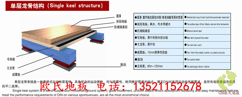單龍骨結構系統是一種具高吸震性和連續性的固定懸浮式的體育木地板系統,完全符合專業要求的運動性能。良好單龍骨TD系統十實物圖的環境適應性,外觀亮麗、耐用、維護簡單方便的特點。